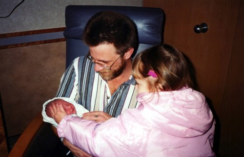 Hanna first day w Dad n Em 2000